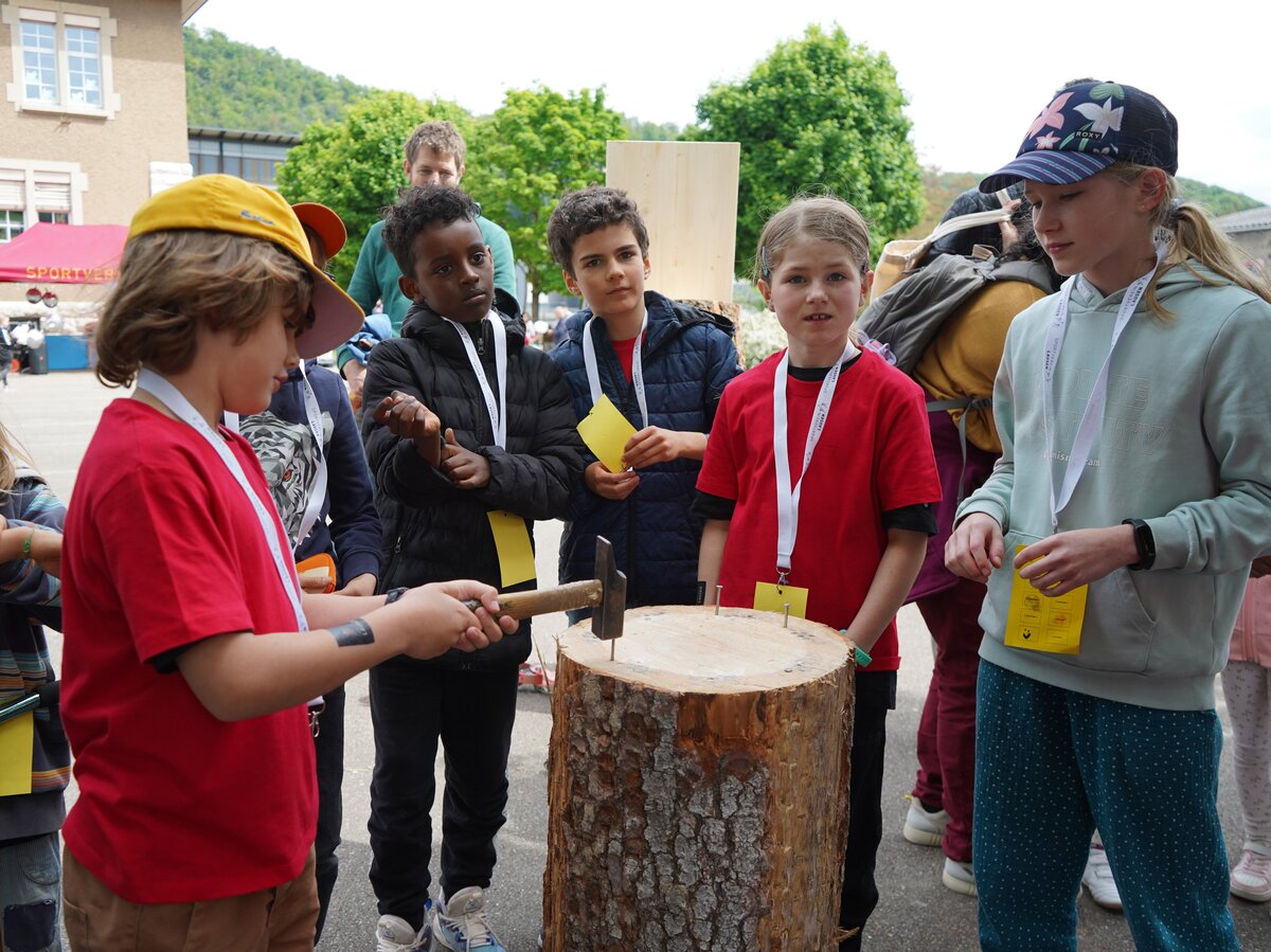 Währenddessen konnten die Kinder auf dem Schulhausplatz mit einer Laufkarte viele Posten aktiv erleben: vom Werfen bis zum Stelzenlaufen, Hämmern, Tanzen, Katapultschiessen und Tattookleben war alles dabei. Als Belohnung gab es für alle Kinder eine feine Zuckerwatte, ein tolles Säckli der Drogerie Ergolz und einen Jubiläumsbutton. Viele lachende Gesichter und strahlende Kinderaugen prägten den Nachmittag.