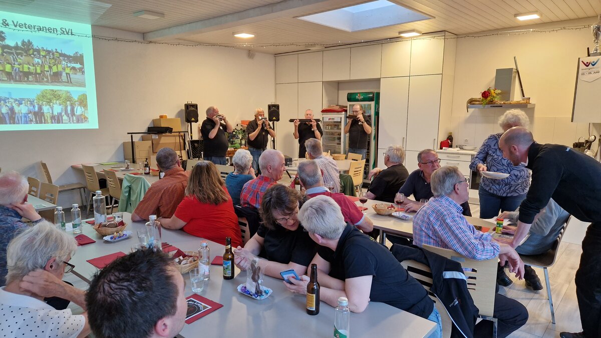 Zum diesjährigen Frühjahrs-Höck traf sich eine erfreuliche Schar von 22 Veteraninnen und Veteranen im Turnerhüsli Stutz. Ein reichhaltiges Angebot stand an diesem Abend auf dem Programm. Im Kern war einmal das Mundharmonika-Quartett Itingen, in welchem zwei Veteranen unseres SVL mitspielen, nämlich Heinz Bürgin und Peter Schaub, Melodie 1 und 2. Mit dabei waren Christian Bieri am Bass und Eugen Buser am Akkord. Letzter gab uns noch eine künstlerische Zugabe mit einem mehrstimmigen Stück, gespielt auf einer einzigen und speziell dafür gebauten Mundharmonika. Mit ihren drei Einlagen bereiteten sie uns eine grosse Freude und eine besondere Ehre. Bei lüpfigen Liedern kam es zu einem frohen Mitsingen und Mitbewegen. Auch hier nochmals vielen herzlichen Dank an das Quartett!