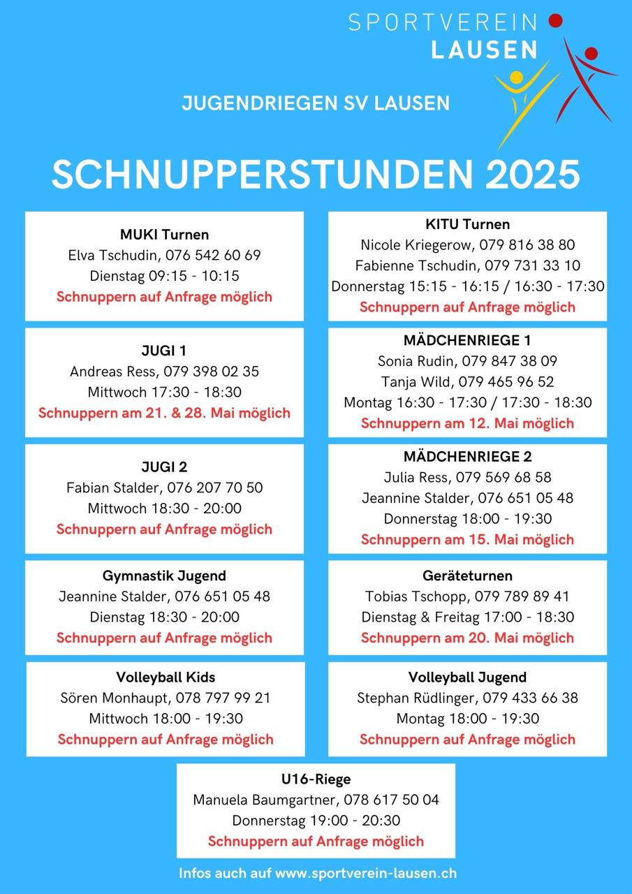 - Geräteturnen: Schnuppertraining am 27. Mai 2025 (neuer Termin!)
