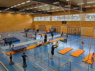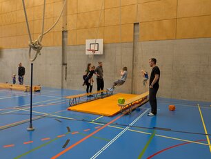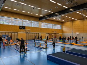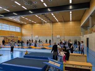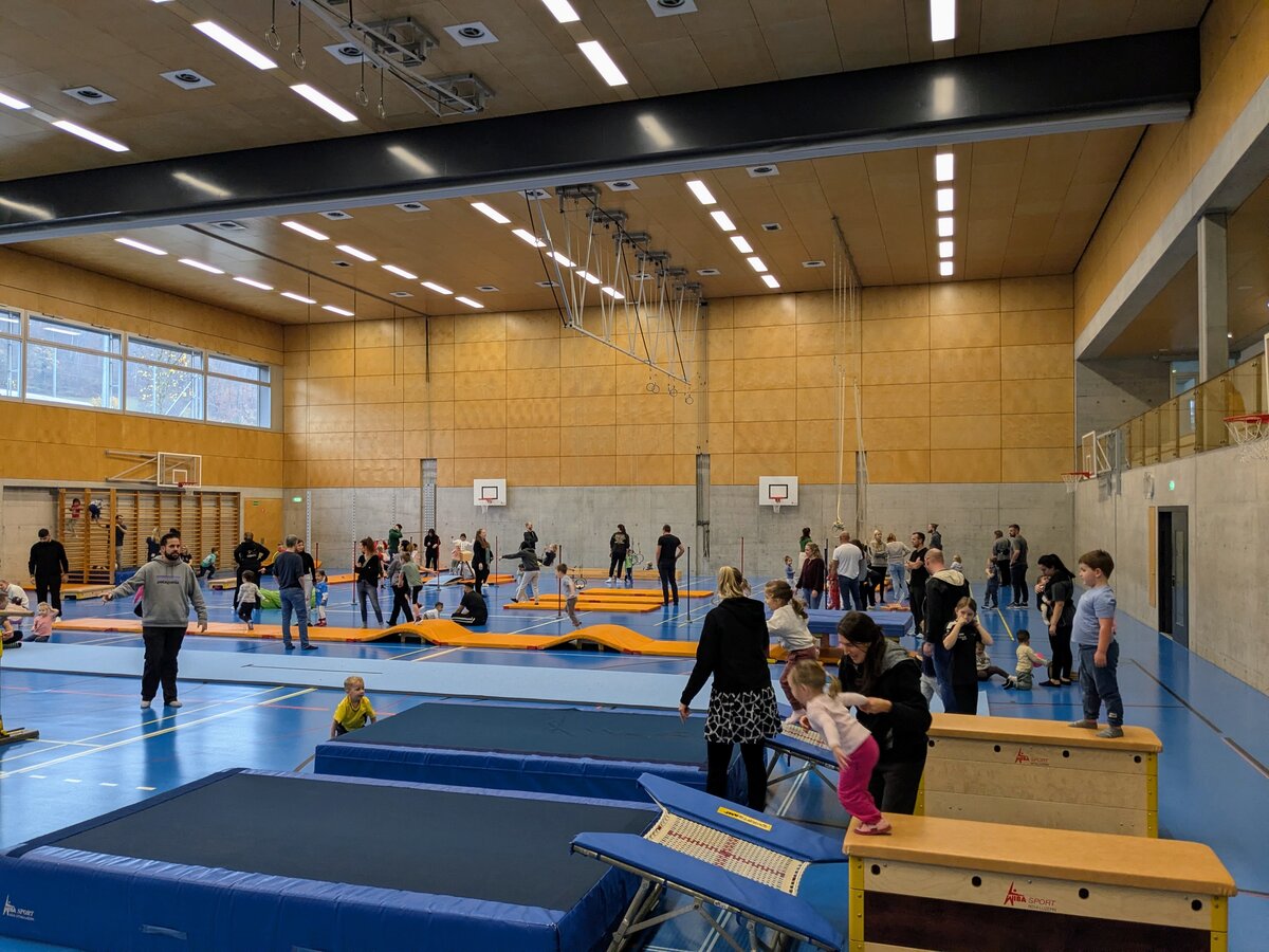 Der «Zwärge-Sunntig» ist eine Aktion, um Familien mit Kindern Freude am Bewegen zu vermitteln. Für einen Morgen lang wurde die Stutz Halle zu einem riesigen Spielplatz für die Kleinsten und ihre Familien, um auf der Bewegungslandschaft zu turnen und zu experimentieren. Es wurde gerannt, geschaukelt, balanciert und gerutscht. Jedes Kind fand eine Aktivität.