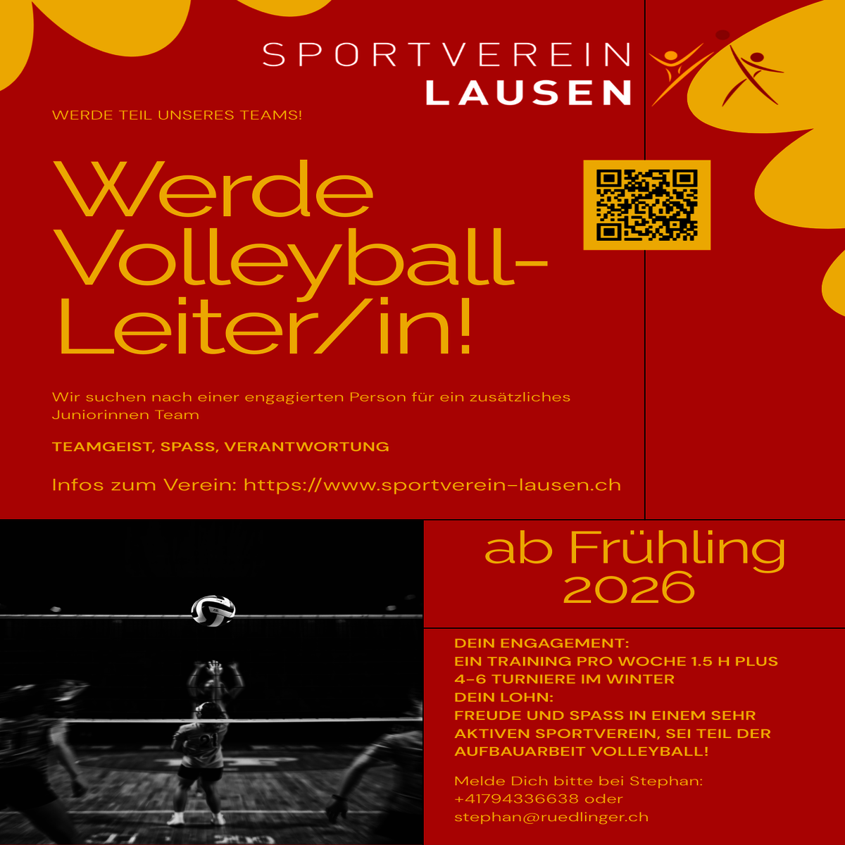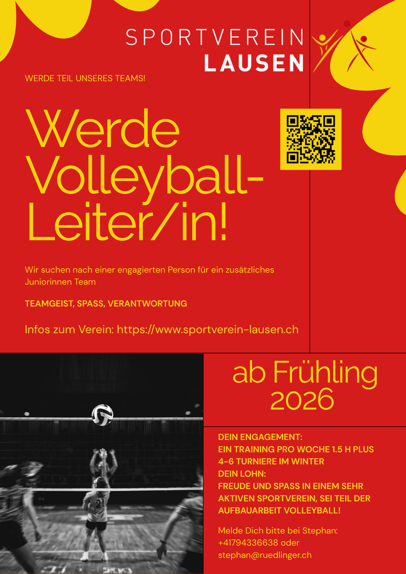 Wir sind auf der Suche nach einer aufgestellten Person, die bereit wäre, einmal pro Woche ein Volleyball-Training für Jugendliche zu leiten. Wir haben im Verein aktuell zwei Stufen, Kids Volley und Rookie Volley. Nun wollen wir im Juniorinnen Bereich mit einer zusätzliche Mannschaft aufrüsten.