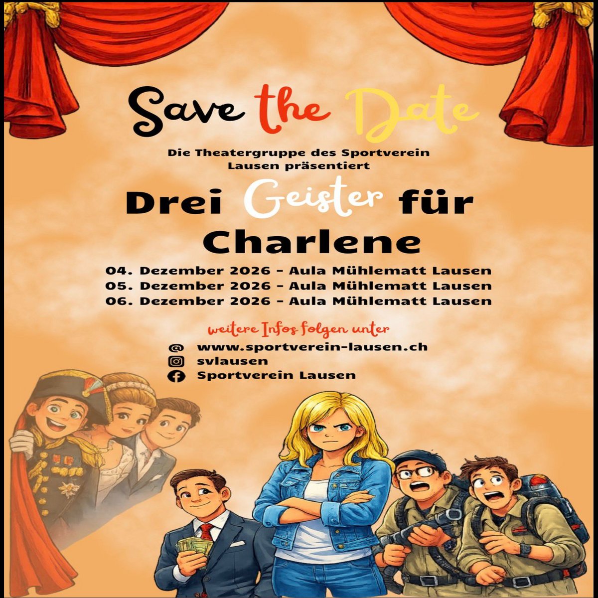 In  diesem Jahr führt die Theatergruppe des Sportverein Lausen in der Aula Mühlematt ein Theater auf, hier schonmal das Save the Date!